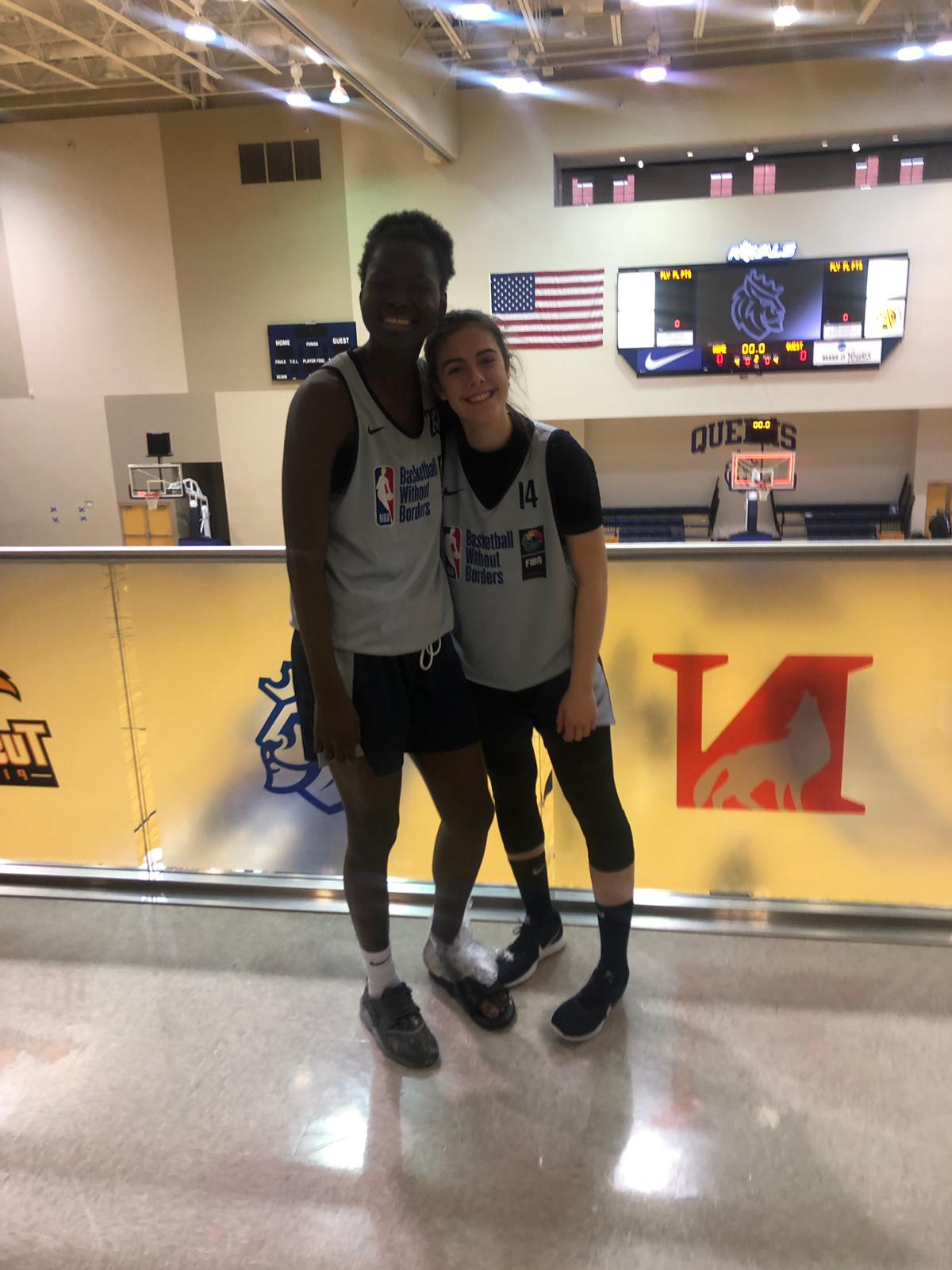 BWB Clau y Ami 1 Publicado el 11 abril, 2019 a 1200 × 1600 en Claudia Gómez y Aminata Sangare representaron a nuestro Baloncesto en el Campus NBA 2019.